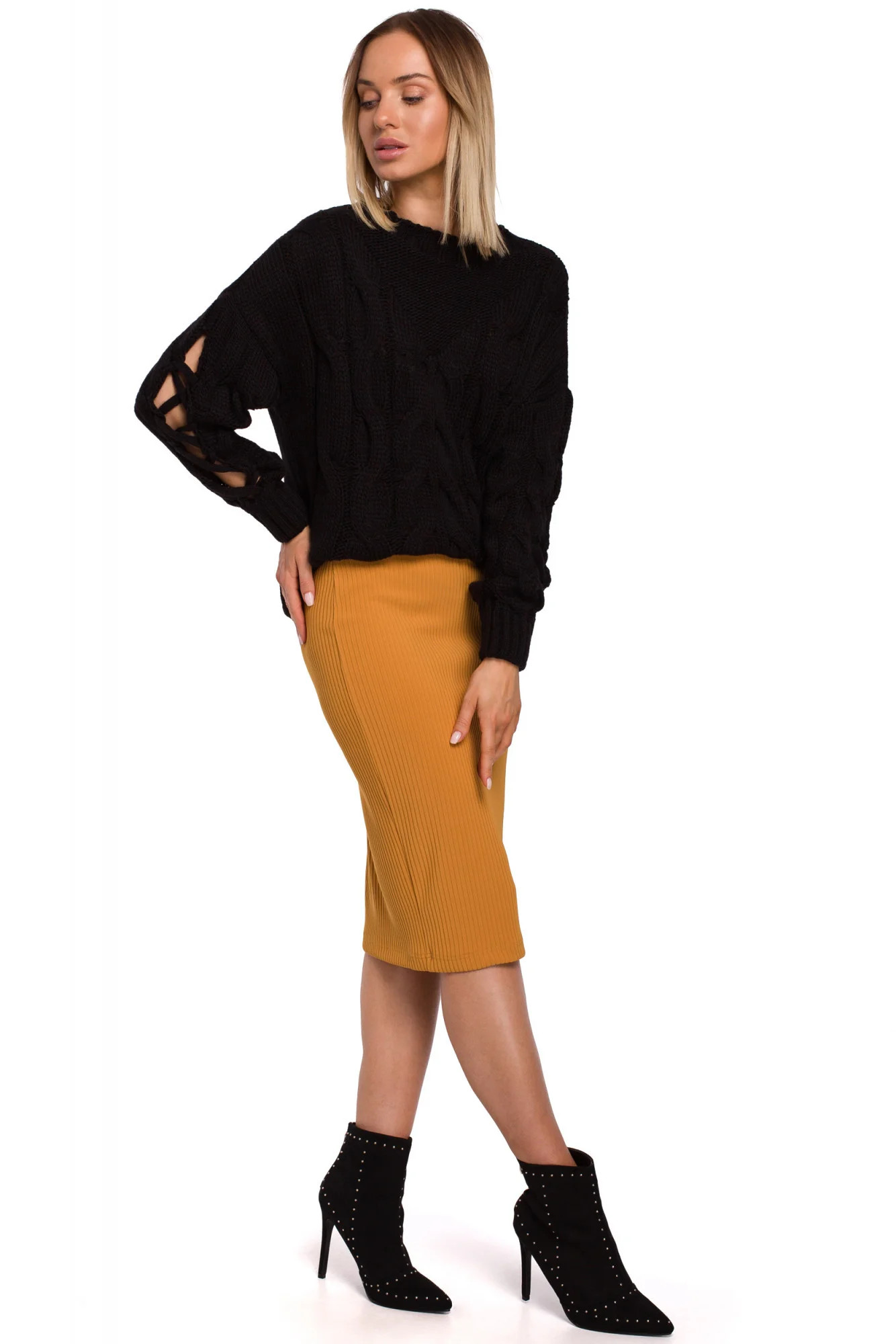Tento svetr má originální rozdělené rukávy, které ukazují trochu více kůže.