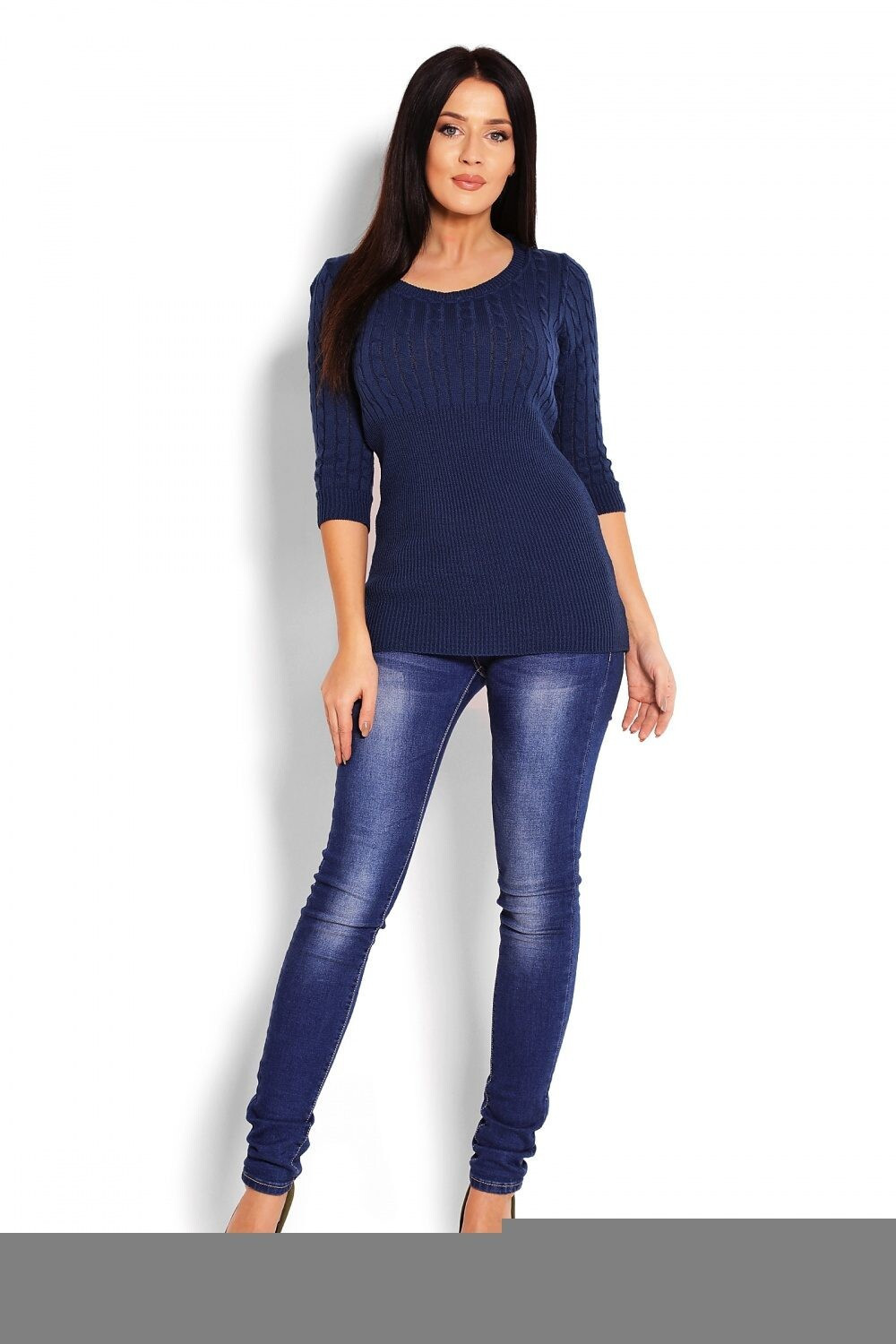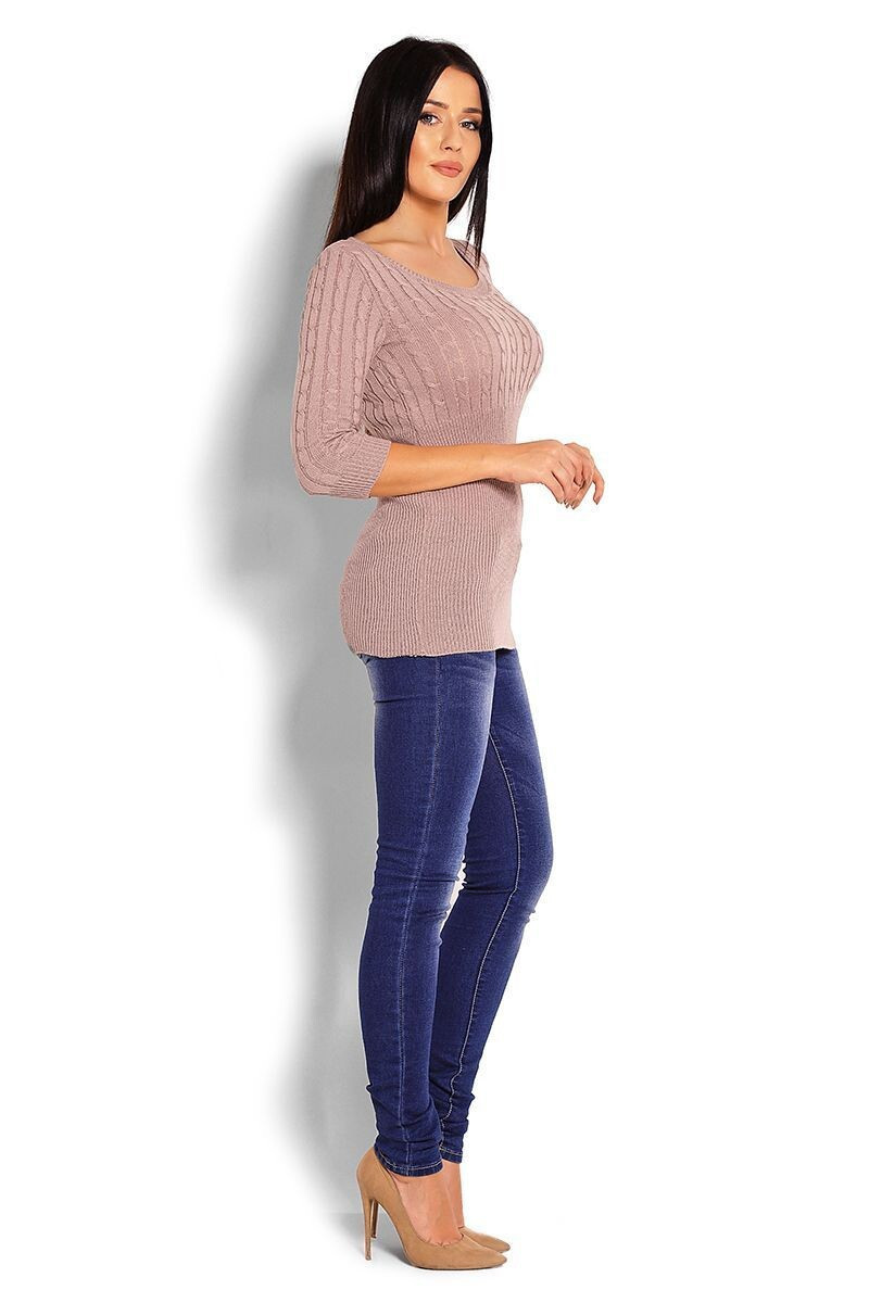 Tento svetr má tříčtvrteční rukávy a kulatý výstřih.