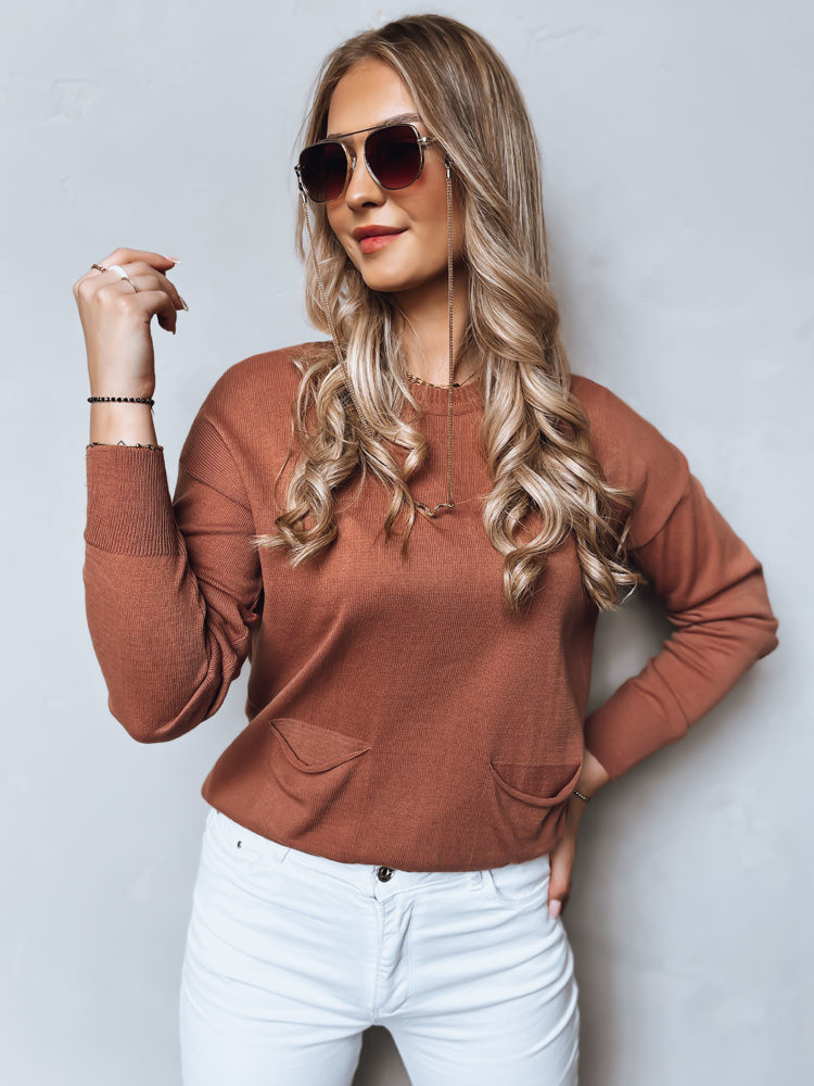 Dámský svetr "MOLLY" je ideální volbou pro nadcházející podzim, má jemně žebrovaný lem a rukávy a originální kapsy. Se svetrem "MOLLY" si můžete užívat pohodlí a styl v jednom.