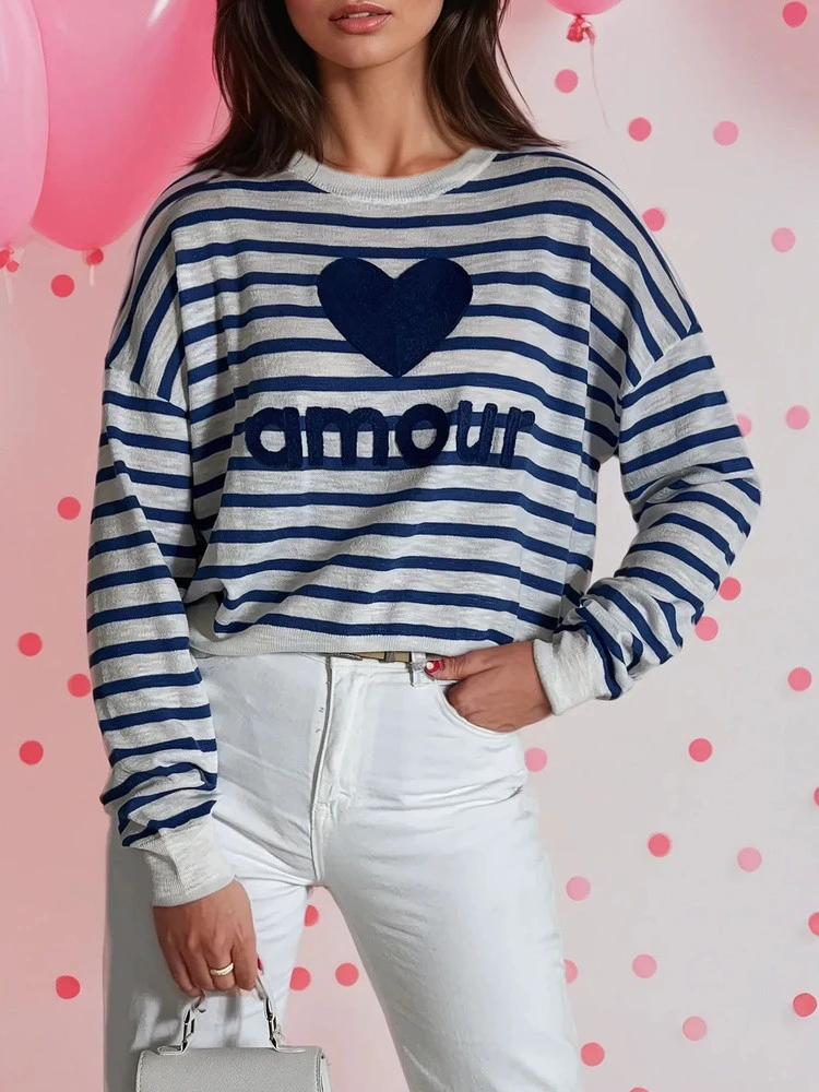 Svetr NOVES s okouzlujícím motivem srdce je ideální volbou pro všechny, kteří chtějí do svého každodenního šatníku vnést nádech romantiky. Je útulný a zároveň stylový, s klasickým pruhovaným vzorem, a představuje univerzální kousek, který se hodí k různým outfitům. Nechte svetr NOVES, aby si získal vaše srdce a stal se oblíbeným kouskem ve vašem šatníku.