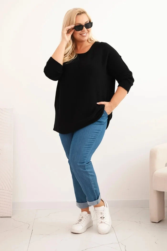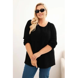 Dámský svetr plus size s lodičkovým výstřihem černý