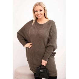 Dámský svetr Plus Size s model 21798765 pončo mocca - K-Fashion