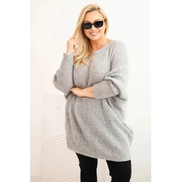 Dámský svetr Plus Size s mohairovým pončem šedý