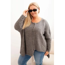 Dámský svetr Plus Size z akrylu s volným střihem a 3/4 rukávem grafitový