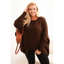 Dámský svetr Plus Size z akrylu s volným střihem a rukávem 3/4 hnědý