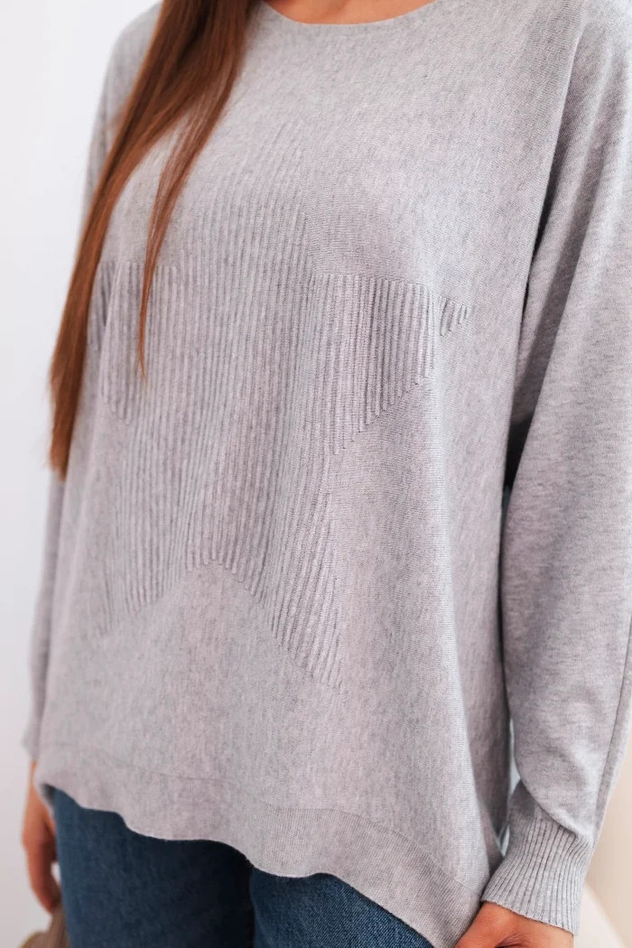 Dámský svetr s delším zadním dílem a šedý model 21731262 - K-Fashion