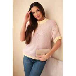 Dámský svetr s krátkým rukávem a kontrastním lemem tmavě pudrově růžový