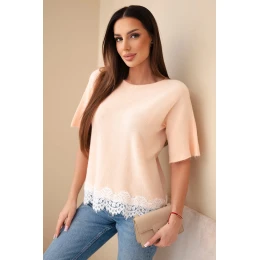 Dámský svetr s krátkým rukávem a krajkou model 21961318 - K-Fashion