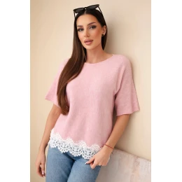 Dámský svetr s krátkým rukávem a krajkou tmavě pudrově růžový