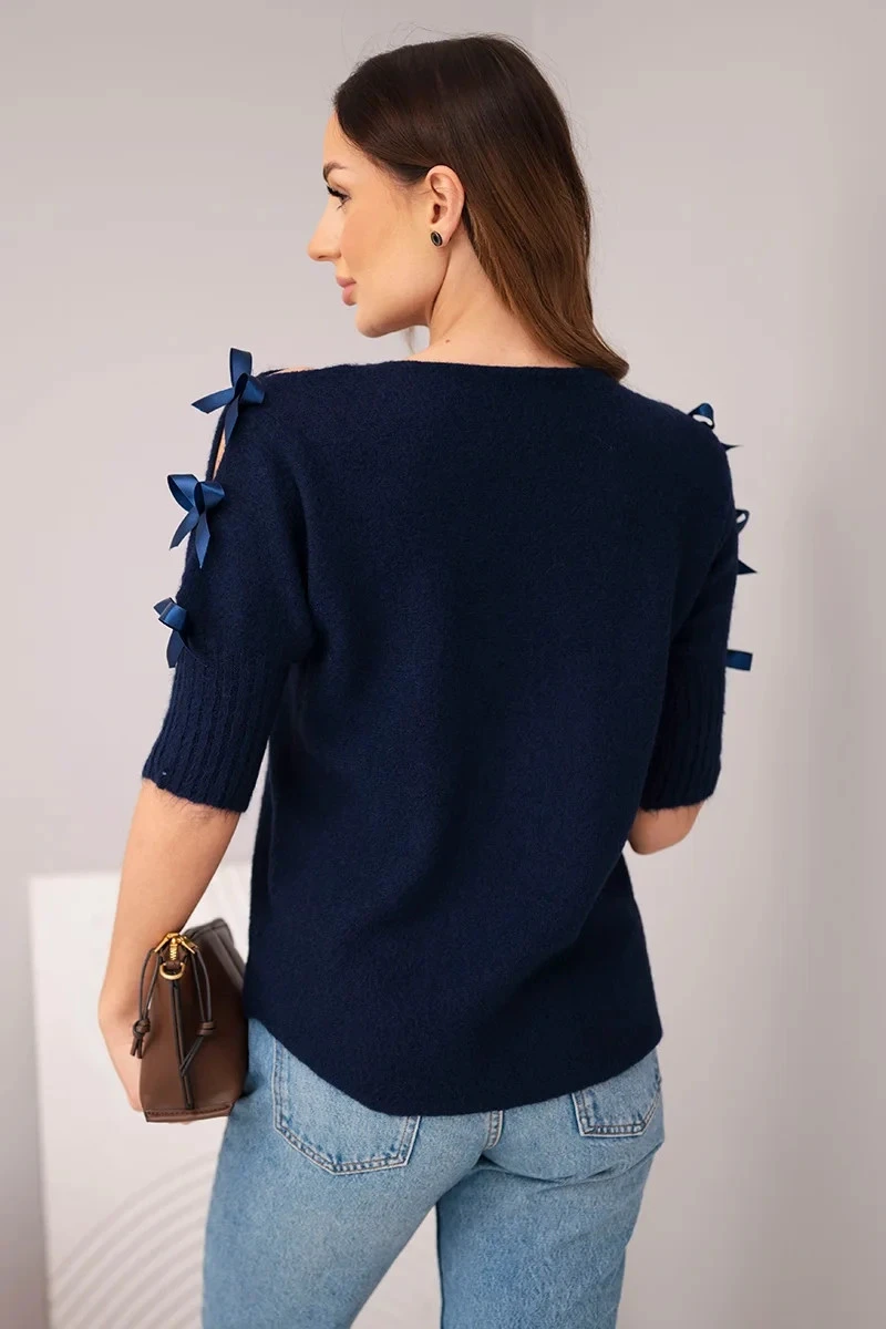 Hledáte výjimečný svetr, který spojuje ženský styl s pohodlím? Dámský svetr s krátkým rukávem a ozdobnými mašličkami je skvělou volbou pro každou ženu, která se chce odlišit. Jeho měkký materiál zajišťuje, že se skvěle přizpůsobí postavě, a dekorativní mašličky na ramenech dodávají kouzlo a originalitu.