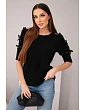 Dámský svetr s krátkým rukávem a ozdobnými mašličkami černý