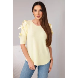 Dámský svetr s krátkým rukávem a ozdobnými mašličkami žlutý
