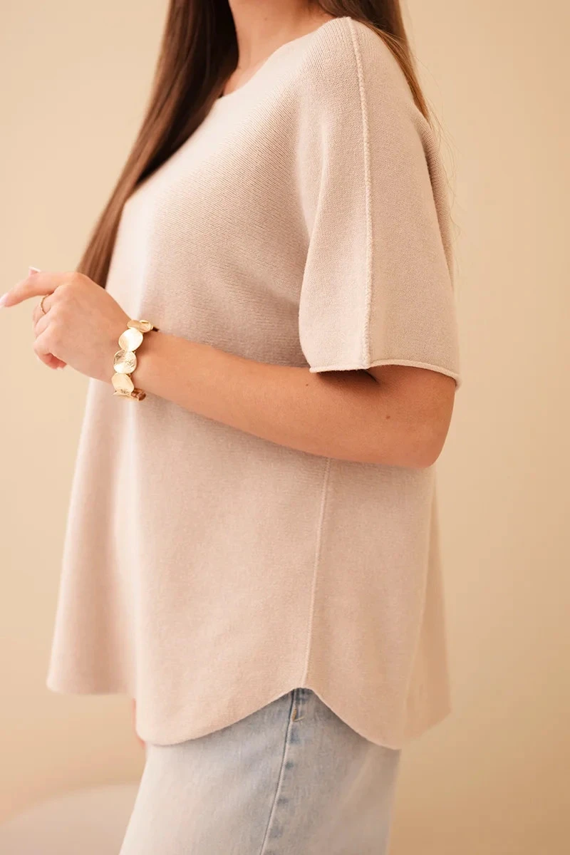 Dámský svetr s krátkým rukávem volného střihu béžový