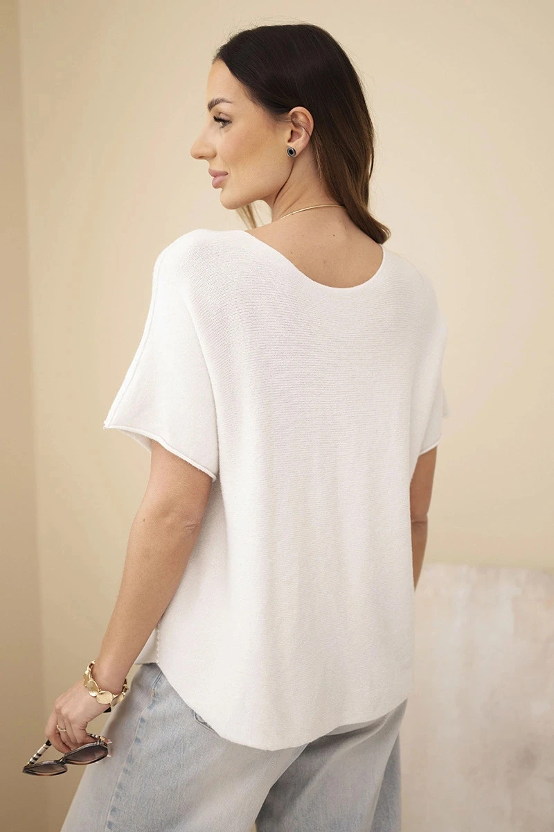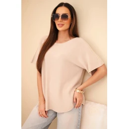Dámský svetr s krátkým rukávem volného střihu béžový