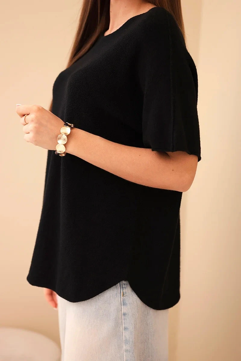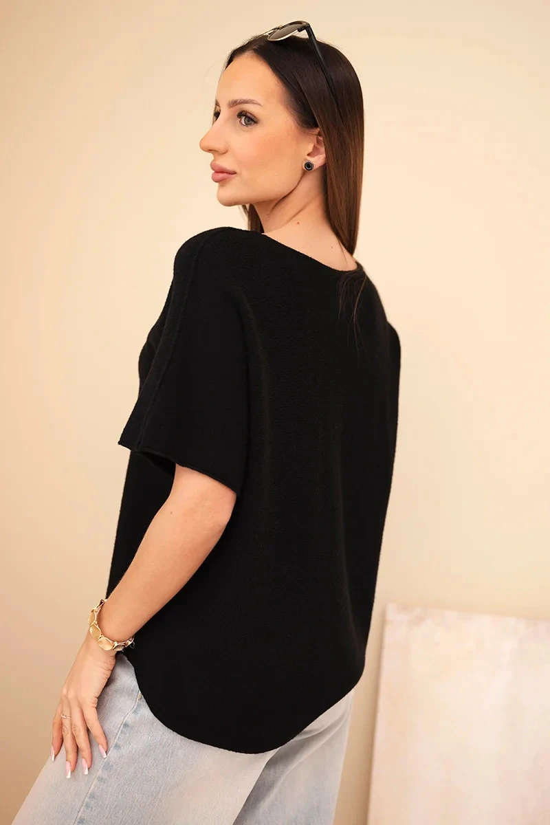 3. Dámský svetr s krátkým rukávem volného střihu černý