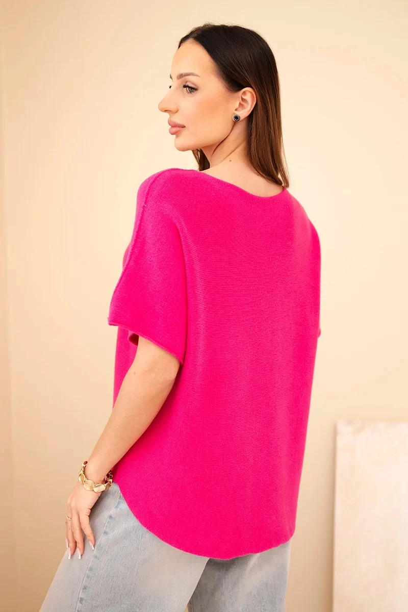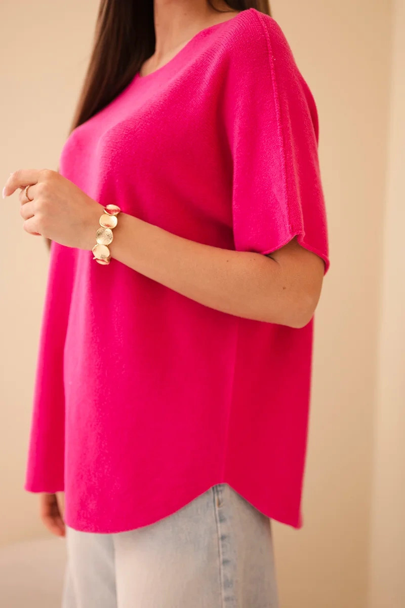 Dámský svetr s krátkým rukávem volného střihu fuchsie