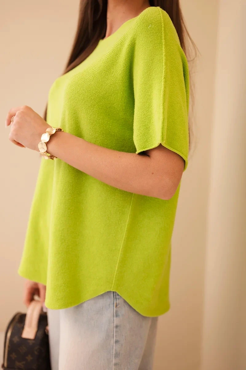 Dámský svetr s krátkým rukávem volného střihu model 21890082 - K-Fashion