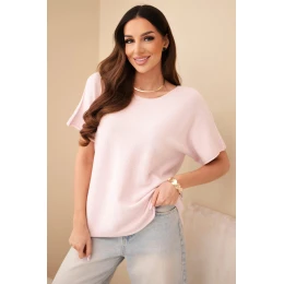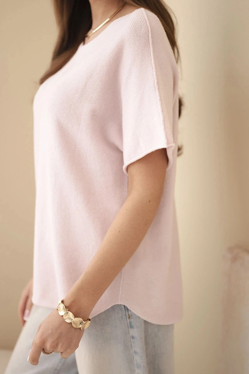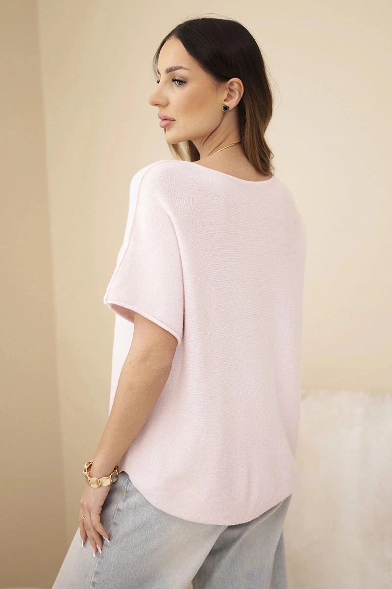 Dámský svetr s krátkým rukávem volného střihu pudrově růžový