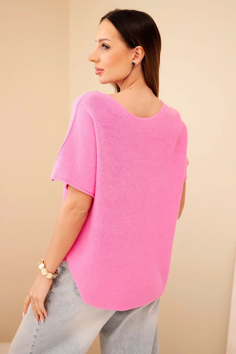 Dámský svetr s krátkým rukávem volného střihu světle růžový