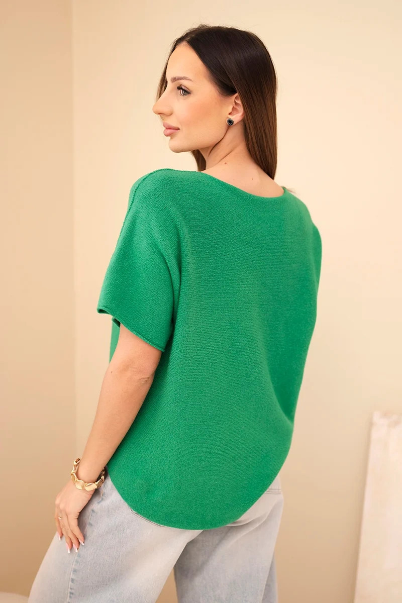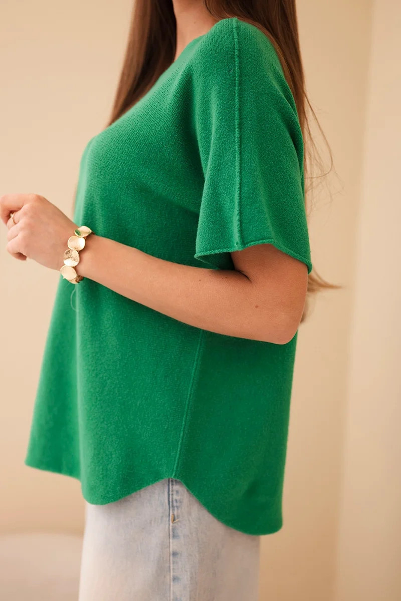 Dámský svetr s krátkým rukávem volného střihu zelený