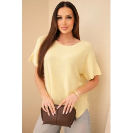 Dámský svetr s krátkým rukávem volného střihu žlutý
