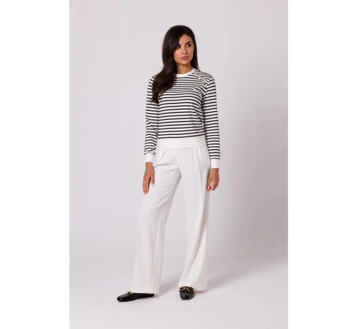 Dámský svetr s ozdobnými knoflíky model 20584320 model 1 Ecru s černou - BeWear