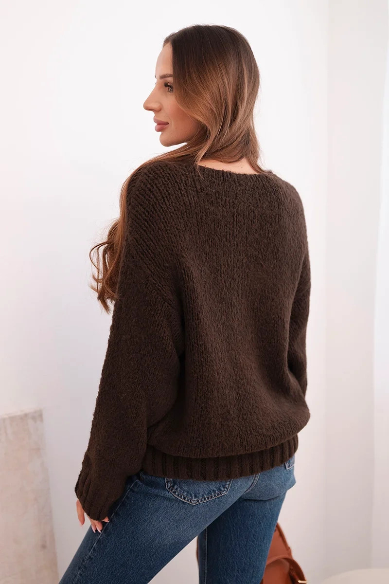 Dámský svetr s podílem vlny a výstřihem do V hnědý