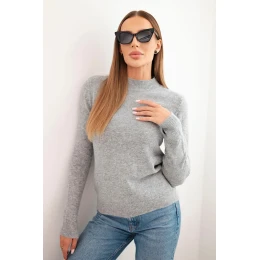 Dámský svetr s polokošilí z měkké pleteniny šedý