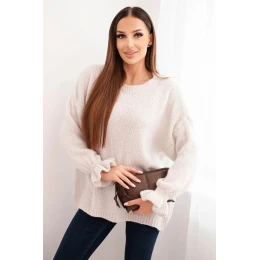 • Dámský svetr s přídavkem mohéru a vlny volného střihu béžový