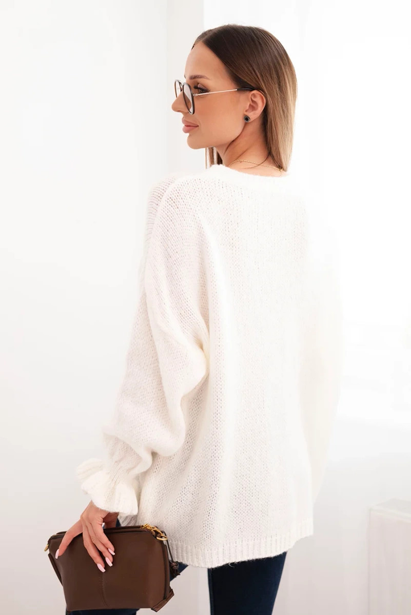 Dámský svetr s přídavkem mohéru a vlny volného střihu ecru