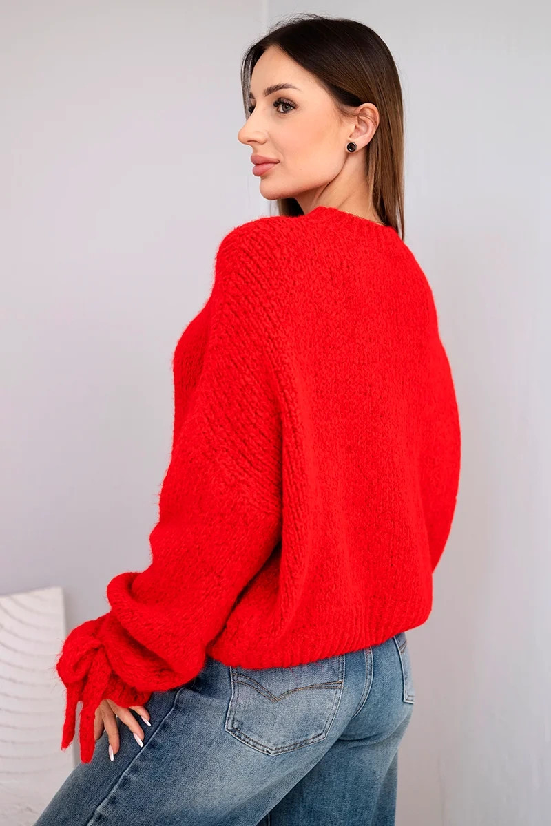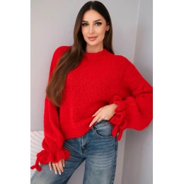 Dámský svetr s přídavkem mohéru s model 21857679 pletením a ozdobnými rukávy červený - K-Fashion