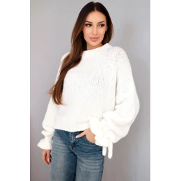 Dámský svetr s příměsí mohairu s model 21857677 pletením a ozdobnými rukávy ecru - K-Fashion