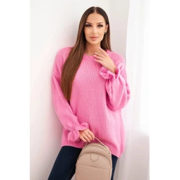 Dámský svetr s příměsí mohéru a vlny volného střihu růžový
