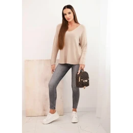 Přidání recenze k Dámský svetr s viskózou a výstřihem do V tmavě béžový
