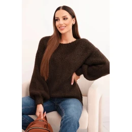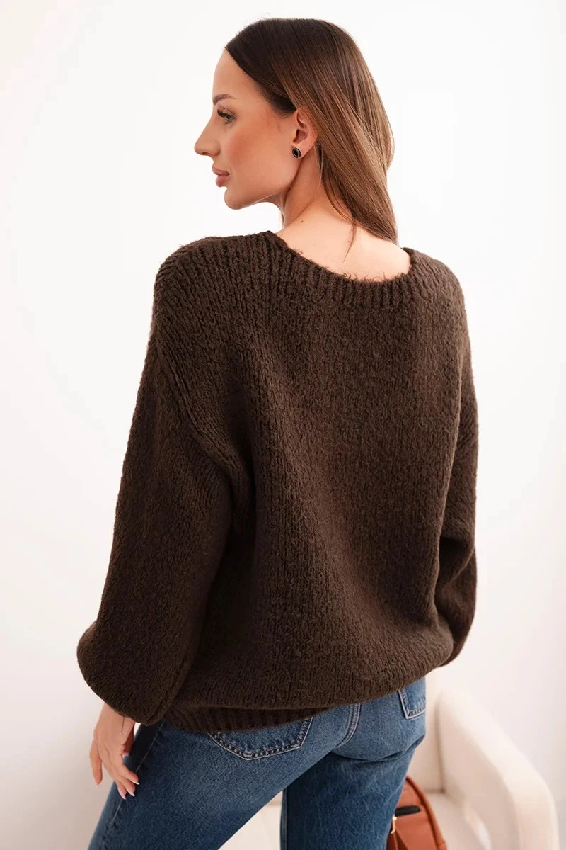 Dámský svetr s vlnou hrubé pleteniny a dlouhým rukávem hnědý