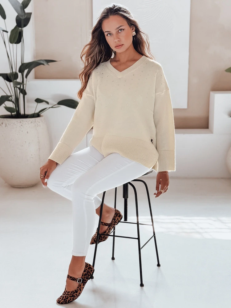 Dámský svetr s výstřihem do V VERALIA ecru FashionStreet MY2517