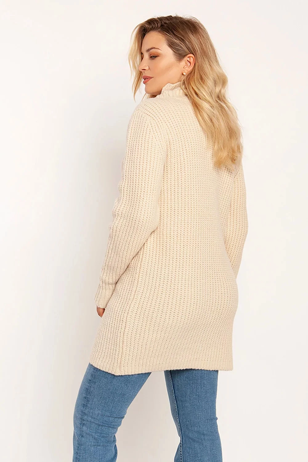 Dlouhý hřejivý rolák. Naše číslo 1 pro podzimní a zimní sezónu - s tímto svetrem vás opravdové pohodlí neopustí ani v těch nejchladnějších dnech! Příze příjemná na dotek s jemným vlasem a žebrovaným stehem jsou jejími zvláštnostmi. Velkorysý rolák je nejen velmi přitažlivý pro obličej, ale také skvěle obepíná.