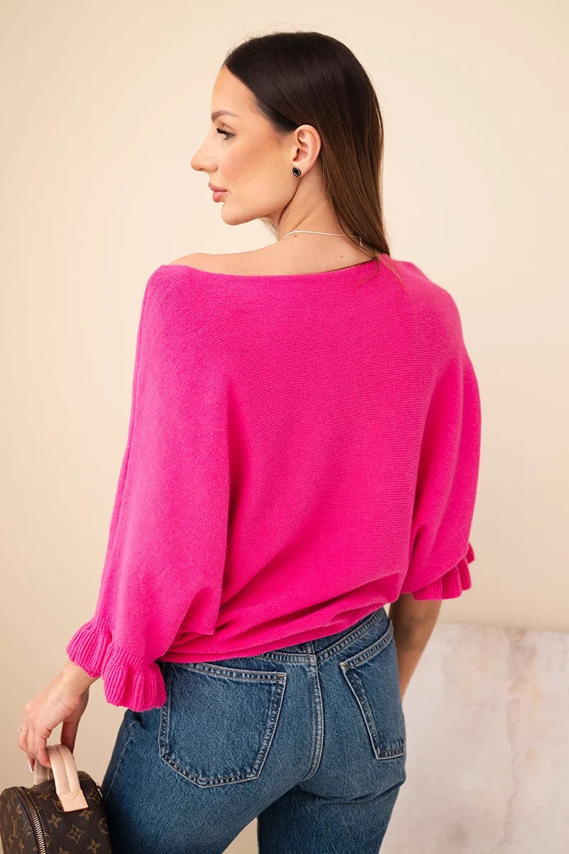 Dámský svetr typu model 21949280 s kulatým výstřihem fuchsie - K-Fashion