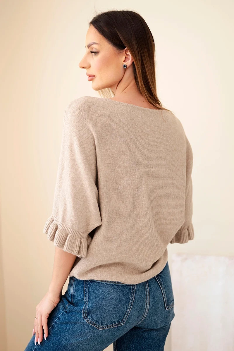 Dámský svetr ve stylu netopýra je jedinečný model, který spojuje módní vzhled s pohodlím nošení. Široké rukávy plynule přecházejí do těla, čímž vytvářejí efektní a volný střih, který skvěle přizpůsobuje postavě a zajišťuje pohodlí po celý den. Kulatý výstřih a jemné nařasení u rukávů dodávají ženský charakter. Tento model se hodí jak pro každodenní stylizace, tak i pro elegantnější příležitosti – do práce, na schůzky nebo na procházku.