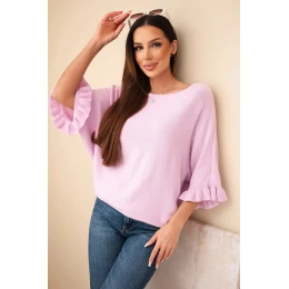 Dámský svetr typu netopýr s kulatým výstřihem jasně fialový