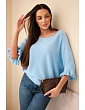 Dámský svetr typu netopýr s kulatým výstřihem modrý