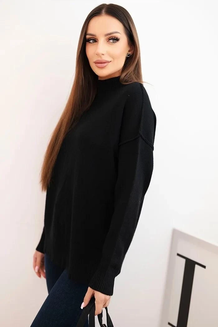 Model má polorolák, který jemně obepíná krk a dodává celku eleganci. Rozparky po stranách dodávají lehkost a dělají svetr dobře kombinovatelným jak s džíny, legínami, tak i se sukní.