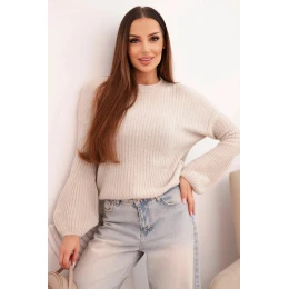 Dámský svetr z baby model 21780845 s nabíranými rukávy béžový - K-Fashion