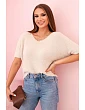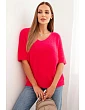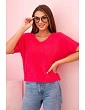 Dámský svetr z měkkého chlupatého materiálu s výstřihem do V a krátkým rukávem lososový