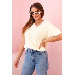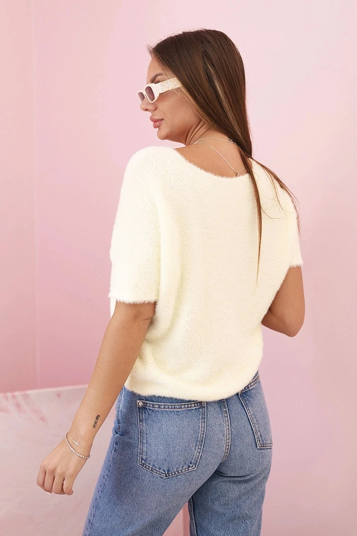 Dámský svetr z měkkého model 21291581 s V výstřihem krátký rukáv žlutý - K-Fashion