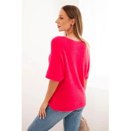 Dámský svetr z měkkého model 21327526 materiálu s V výstřihem krátký rukáv růžový - K-Fashion
