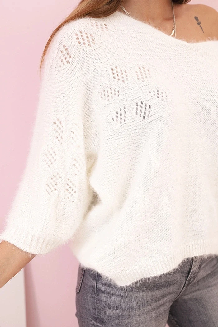 Dámský svetr z model 21272125 volného střihu s výstřihem do V ecru - K-Fashion