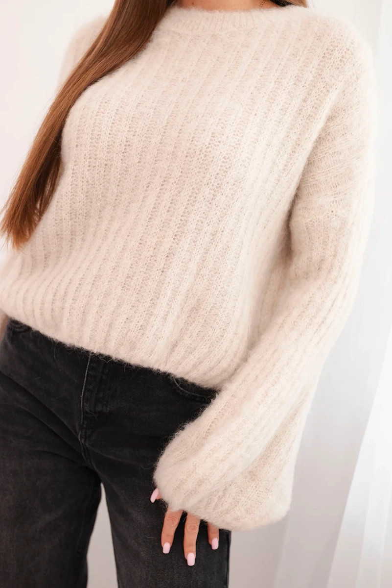 Dámský svetr z mohairu s balónovými rukávy béžový