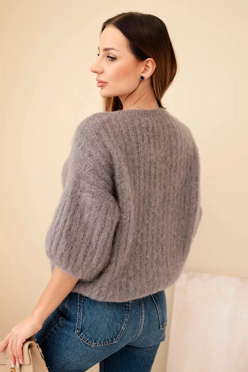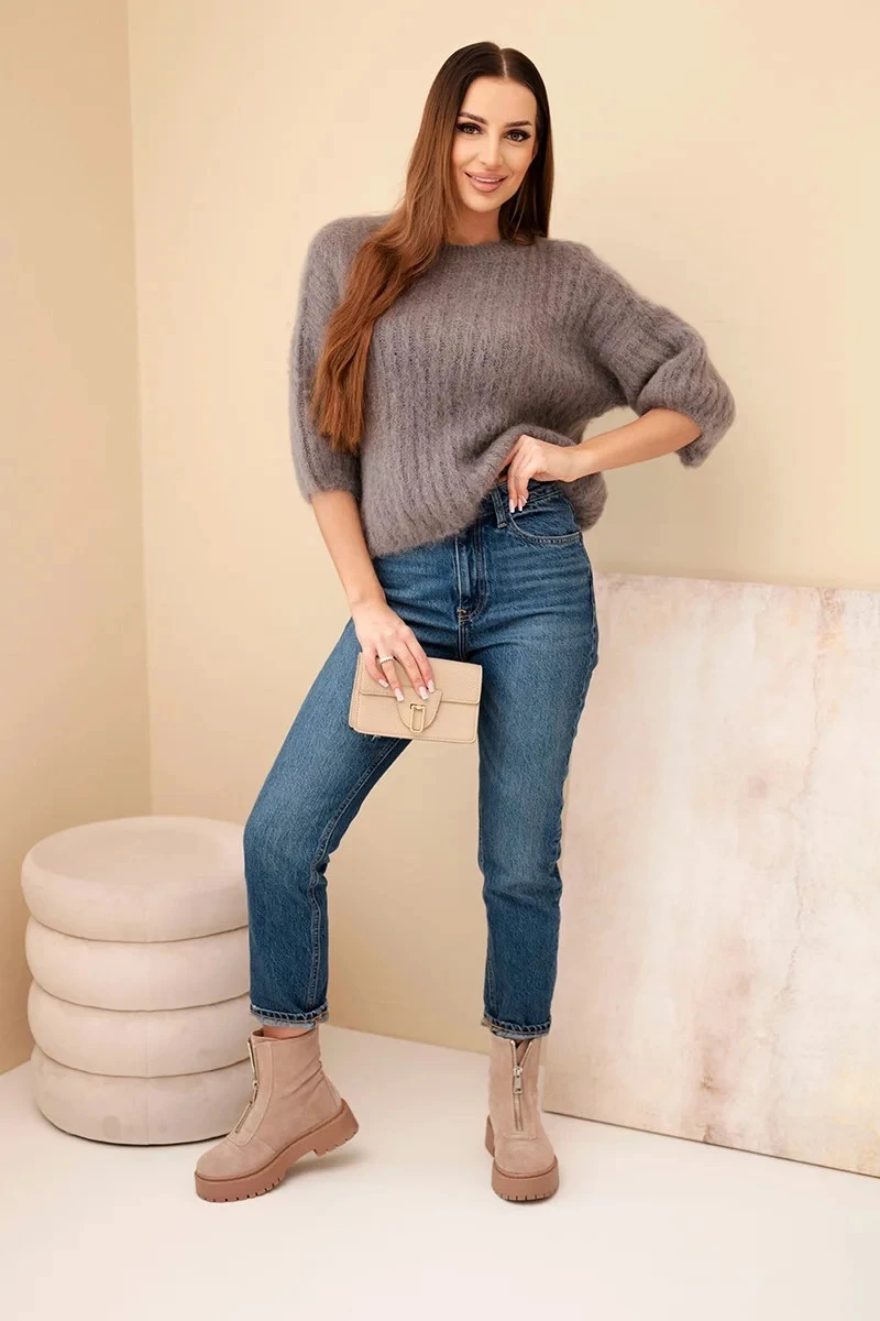 Stylový a neuvěřitelně příjemný dámský svetr s moherem je ideální volbou na chladnější dny, kdy chcete vypadat módně a cítit se pohodlně. Vyznačuje se volným, oversized střihem a efektivními rukávy 3/4, které dodávají celku lehkost a moderní charakter.