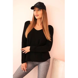 Dámský svetr z viskózy s dlouhým rukávem a kulatým výstřihem černý